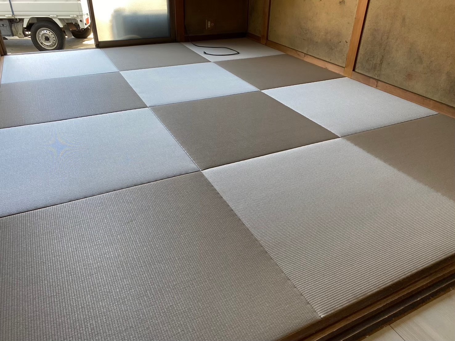 縁無し畳は、通常の畳よりも角の仕上げが難しく、職人の繊細な技術が求められます。少しのズレや歪みでも美しい市松模様が崩れてしまうため、正確な採寸と丁寧な加工が重要です。