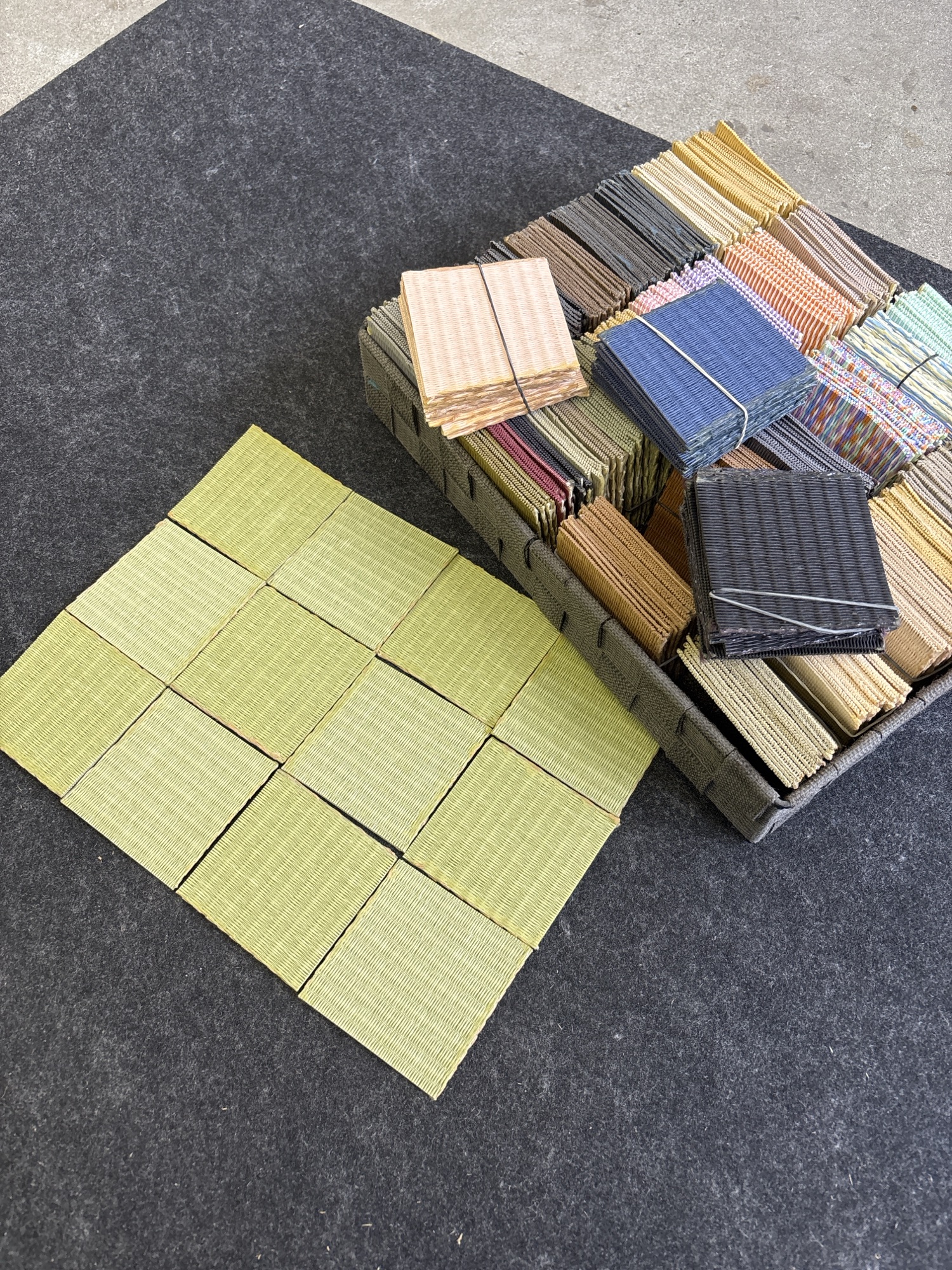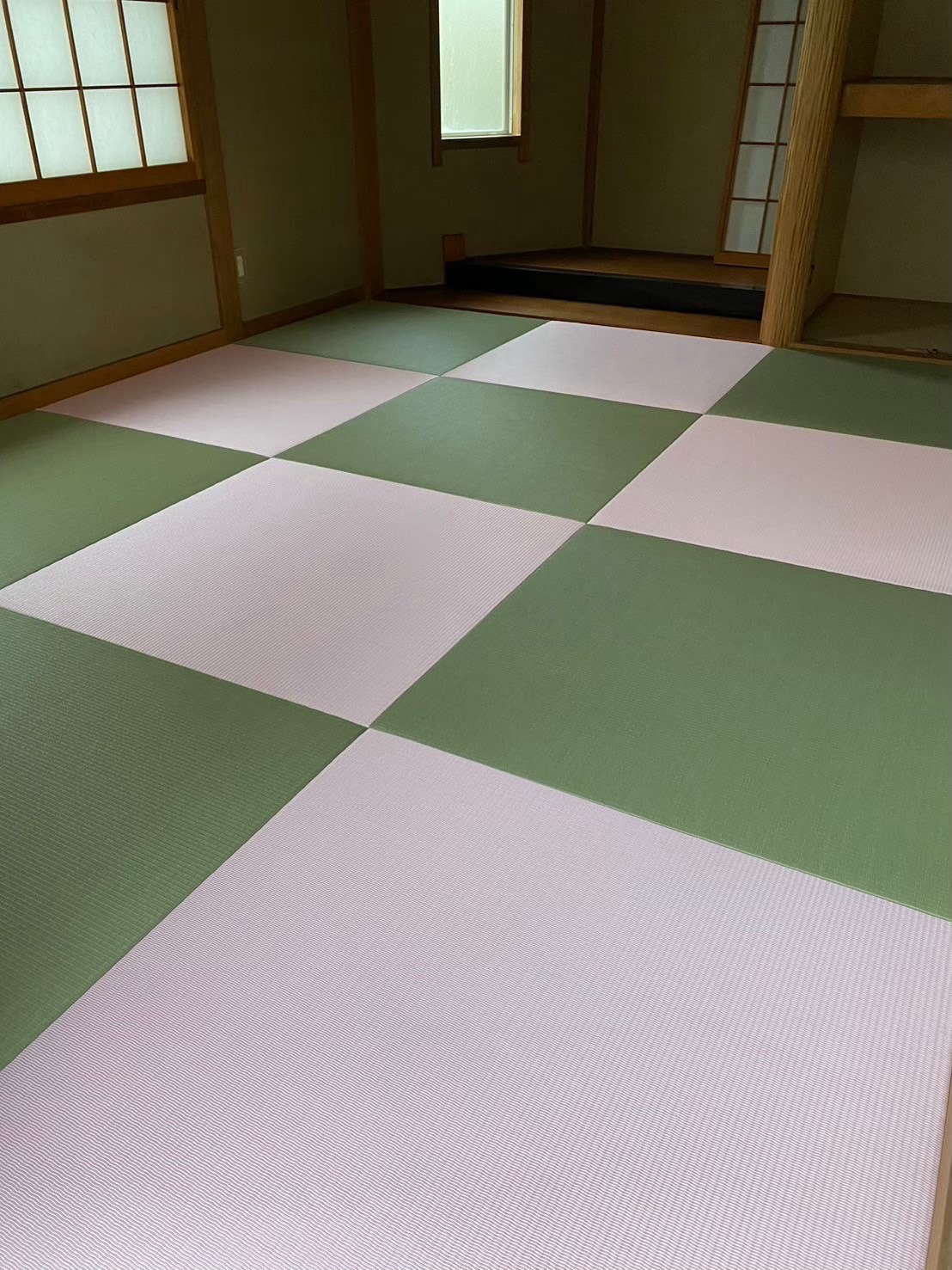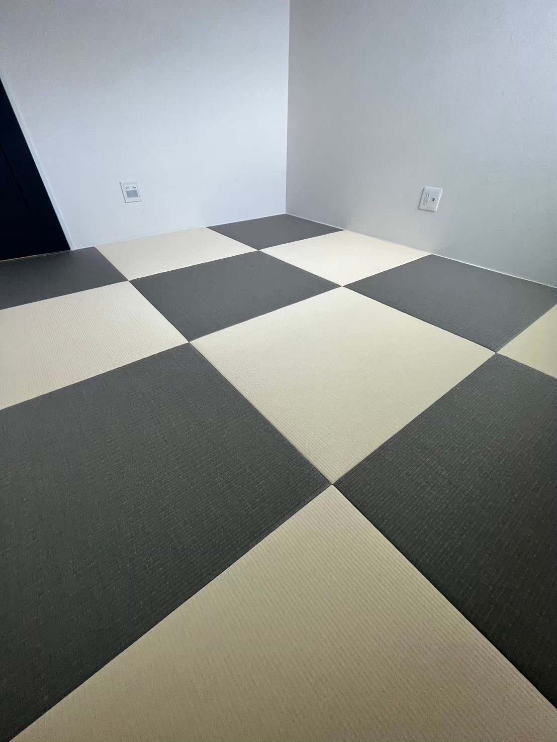 半畳を90度ずつ向きを変えて敷くことで、自然に市松模様が現れます。ただ、色味や素材によって陰影の出方が変わるため、お客様からはよくこんな声をいただきます。
